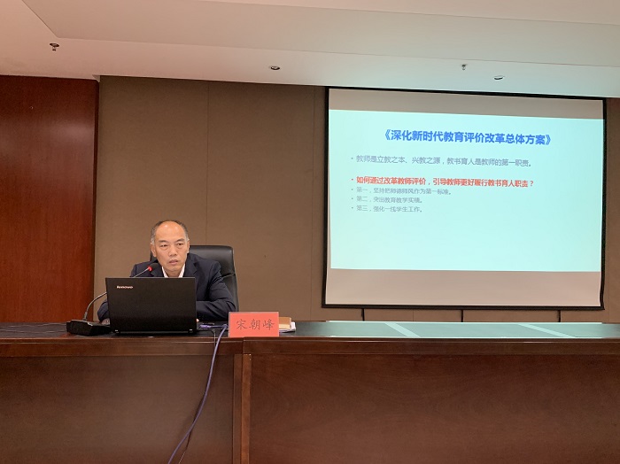 11月5日下午,在弘文守正楼9楼报告厅,我校2020年度新入职教师培训第二讲开讲,人事处处长宋朝峰受邀作了题为《师德师风建设与职业发展探索》的精彩报告。 宋朝峰处长从国家政策制定、学校发展规划和高校教师自身行为...