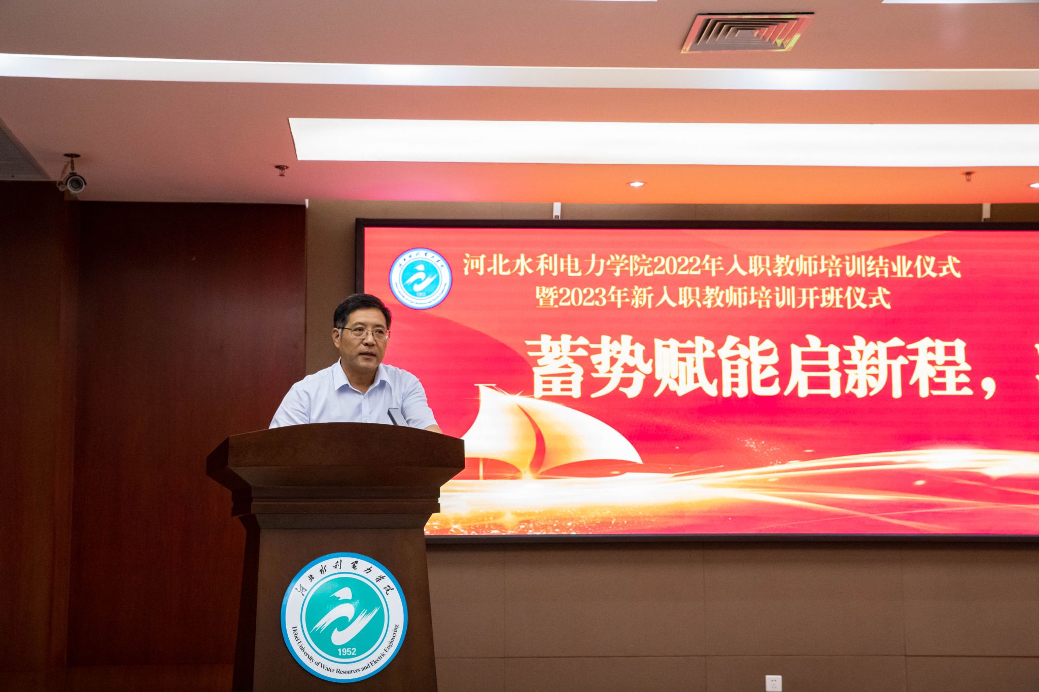 9月21日下午,我校在学术报告厅举行了2022年入职教师培训结班暨2023年新入职教师培训开班仪式。校长张效松、副校长崔立功、教务处、学生处、马克思主义学院、系(部)领导、校本培训师团队成员、青年教师导师代表、2022年及2023年新入职教师共计150余人参加了开班仪式。仪式由人事处副处长伊淑霞主持。我校一直以来高度重视教师队伍建设,将完善培训体系作为师资队伍建设的重要环节,并成立了校本培训师团队,把培训工作放到更加突出位置,...
