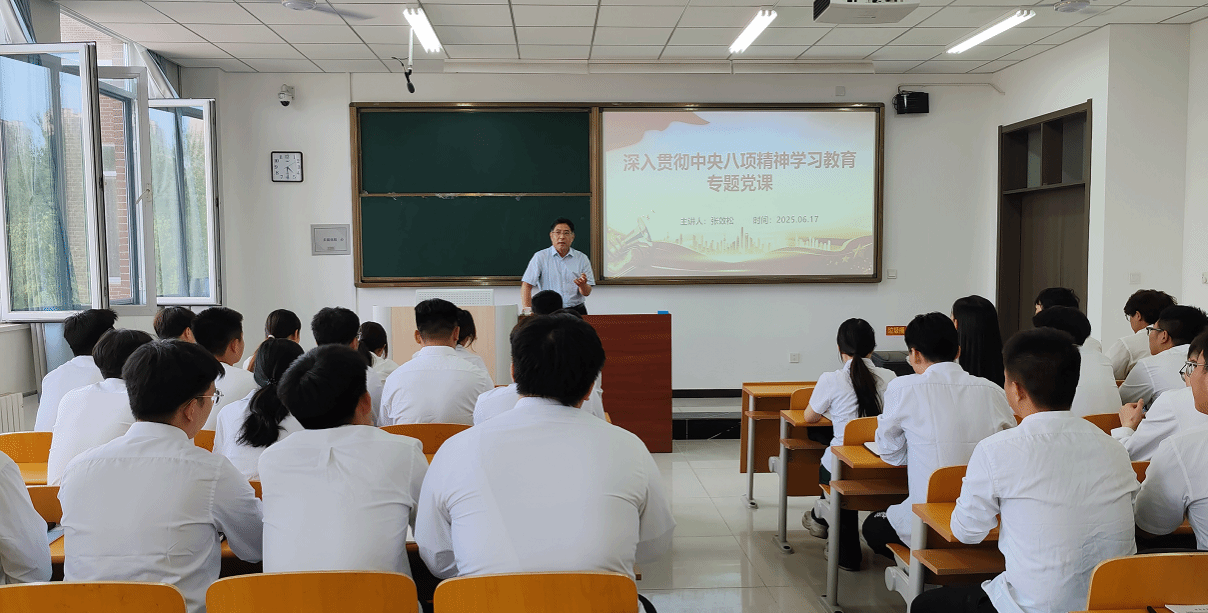 为深入学习贯彻中央八项规定精神,切实提升学生党员的政治素养,6月17日,党委书记张效松走进电力工程系,为青年党员带来了一场主题鲜明、内容深刻的专题党课。 张效松以党史为鉴,系统梳理了党的作风建设历程。从革命战争时期毛泽东同志提出的“人民监督政府”理念,到新中国成立初期党在复杂环境中坚持自我净化;从改革开放时期“解放思想、实事求是”的思想解放,到新时代全面从严治党战略部署,生动展现了中国共产党在作风建设上的不懈探索。...