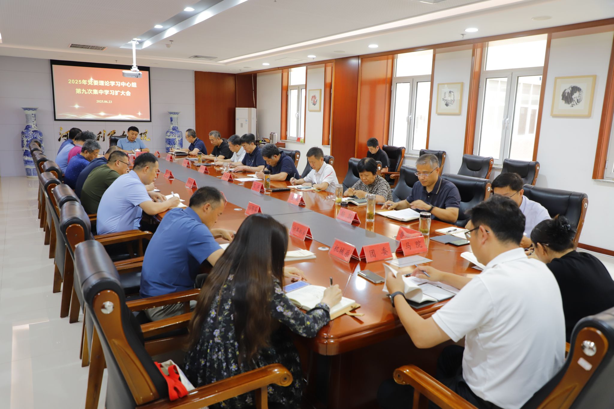 6月23日下午,我校召开2025年党委理论学习中心组第九次集中学习扩大会,认真学习习近平法治思想、《习近平关于加强党的作风建设论述摘编》《党的十八大以来深入贯彻中央八项规定精神的成效和经验》三项内容。校领导班子成员出席会议,党委书记张效松主持会议并讲话。张效松指出,习近平法治思想深化了我们党对执政规律、社会主义建设规律和人类社会发展规律的认识,深刻回答了新时代为什么实行全面依法治国、怎样实行全面依法治国等一系列重大问题。...