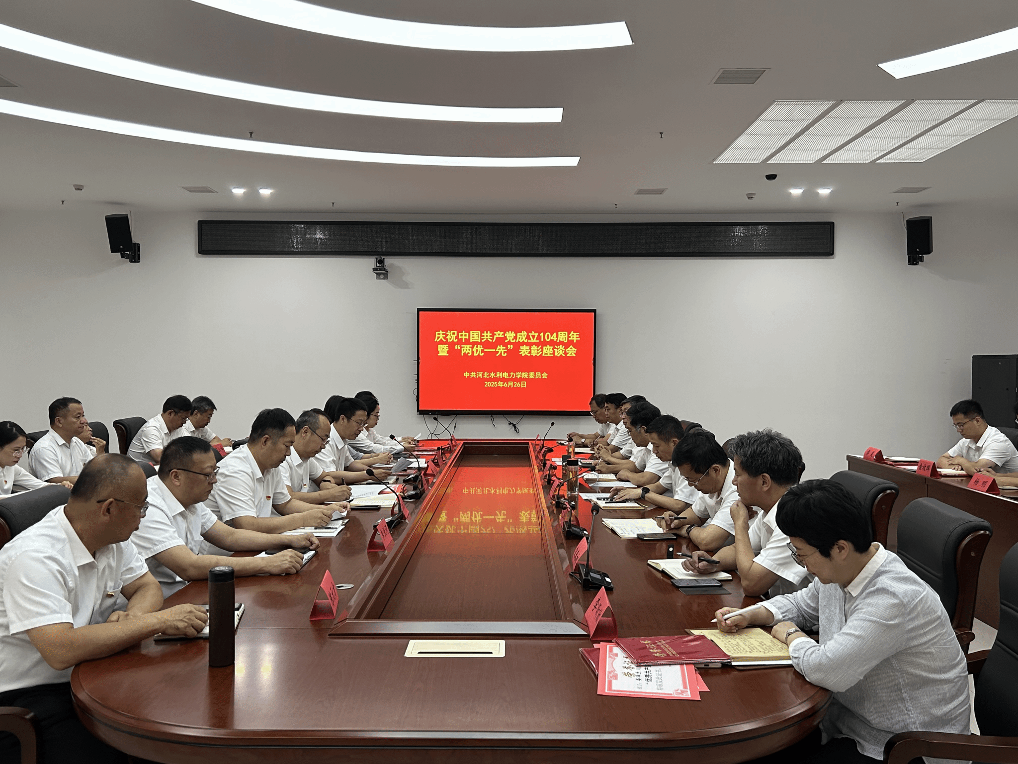 为庆祝中国共产党成立104周年,表彰先进典型,凝聚奋进力量,6月26日下午,我校召开庆祝中国共产党成立104周年暨“两优一先”表彰座谈会。学校党委书记张效松、副校长于振海出席会议。学校党委主要部门负责同志、各二级党组织书记和受表彰的先进集体和先进个人代表参加会议。会议由学校党委副书记、校长王滨主持。于振海宣读了《中共爱体育平台,爱体育(中国)一站式服务平台委员会关于2025年优秀共产党员、优秀党务工作者和先进基层党组织的表彰决定》,对丁建川等70名优秀共产党员、...