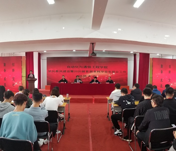 为贯彻学校第一届党代会精神,结合“不忘初心、牢记使命”主题教育活动,进一步加强学院学风教风建设,做好首届本科毕业生就业工作,全面提升学院教育教学水平和人才培养质量,10月24日下午,自动化与通信工程学院在...