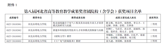 近日,河北省教育厅发布了《河北省教育厅关于公布第八届河北省高等教育教学成果奖获奖名单的通知》(冀教高[2019]31号),我校共有4项成果获奖。其中二等奖2项,三等奖2项,获奖数量实现新的突破。 第八届河北省高等...