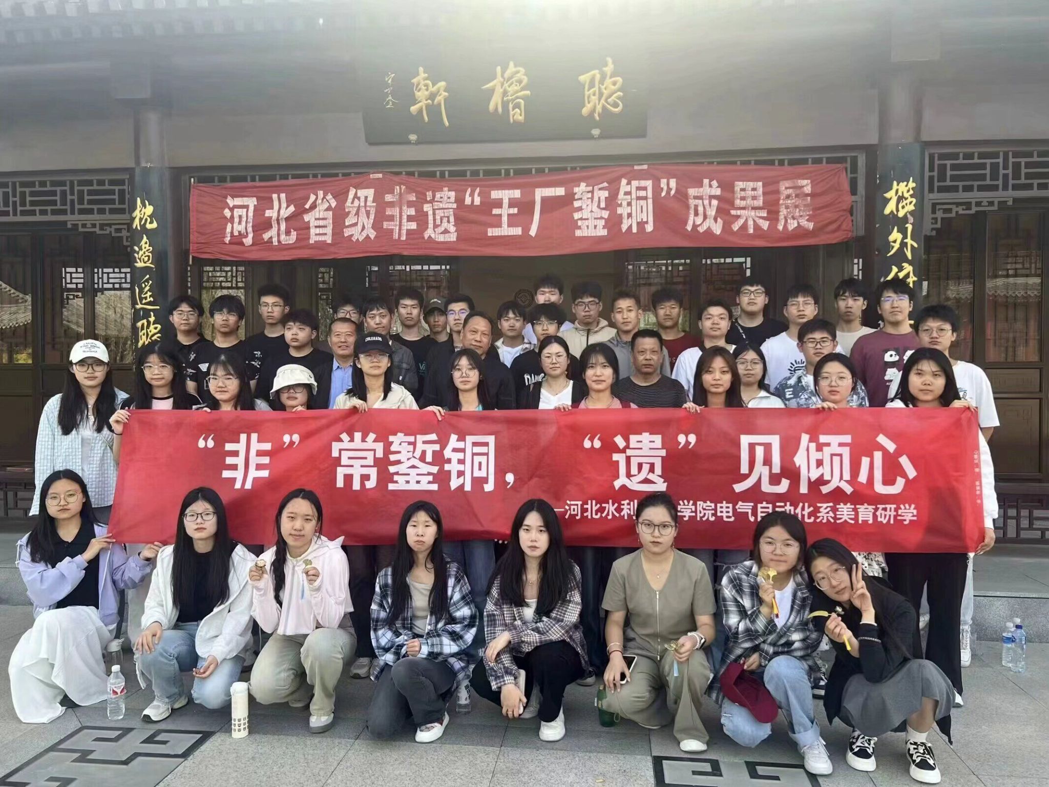 为弘扬民族工艺,传承非物质文化遗产,4月25日,电气自动化系师生前往沧州市王厂錾铜艺术馆开展美育研学活动。活动伊始,河北省级非物质文化遗产项目“王厂錾铜浮雕”工艺第四代传承人王春周老师带领同学们参观“王厂錾铜成果展”,为大家详细讲解了包括炼、描、錾、锤、磨等多个步骤的錾铜工艺,以及錾刻分类、錾刻方法、作品保养和錾刻工艺传承与发展等方面内容。随后,王春周老师带领大家观赏了王厂錾铜获奖作品。在薄薄的铜片上錾刻出无数细密流畅的线条,...