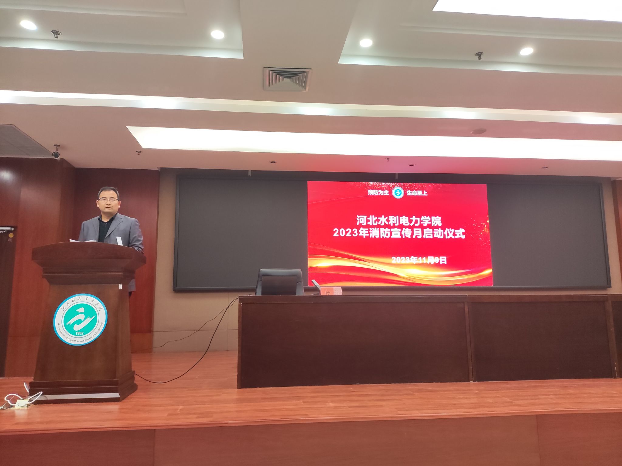 11月9日下午,我校在学术报告厅举行2023年消防宣传月启动仪式,启动仪式由安全工作处处长欧仁辉主持,安全处、后勤处、学生处、教务处、团委、高新区校区管委会教职工代表、八系辅导员及学生代表共200余人参加。首先,欧仁辉传达部署了《爱体育平台,爱体育(中国)一站式服务平台2023年消防宣传月活动方案》;随后,沧州市消防救援支队新闻宣传科科长孙铭结合各类火灾案例为师生开展讲座,他对如何预防、杜绝可能引起消防事故的内患外患、个人面对突发火灾事故应如何进行报警和救灾逃生等方面进行了全面的讲解,...