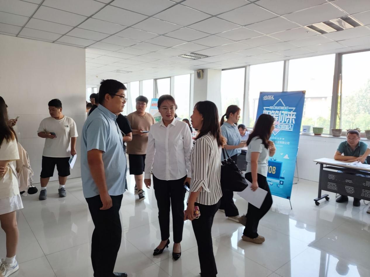 招聘会现场各单位人力资源专员通过企业介绍、产品展示、互动交流等形式,向毕业生介绍企业工作环境、薪酬福利、岗位需求等情况。我校各系领导老师与青县经济开发区党工委副书记陈鑫及用人单位领导就专业情况、企业需求、公司发展、薪资待遇等进行深入交流,并表示我校专业设置与青县企业需求高度契合,将进一步探索在实习实训、就业基地建设、就业创业活动等方面的深入合作。