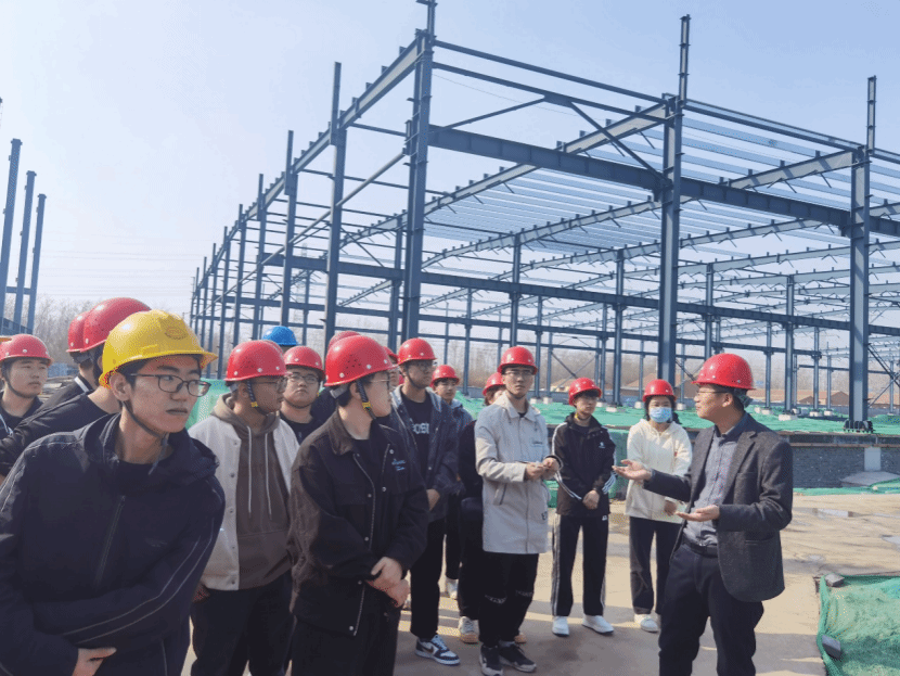 王建明指出,深化产教融合协同育人,实现教育链、人才链与产业链、创新链的有机衔接,是培养适应产业转型升级和实现高质量发展需要的高素质应用型人才的必要路径。通过创新班这种“沉浸式”的教学模式,实现校企双赢局面,共同推动地方经济社会发展。同时,王建明希望同学们能够珍惜这次难得的学习机会,创新班的老师们能以此为契机,积极探索教学改革的新途径。最后,创新班学生参观了实践基地项目现场,由企业工程师讲解工程概况与设计、施工技术要点,开启了学生进入创新班的第一课。