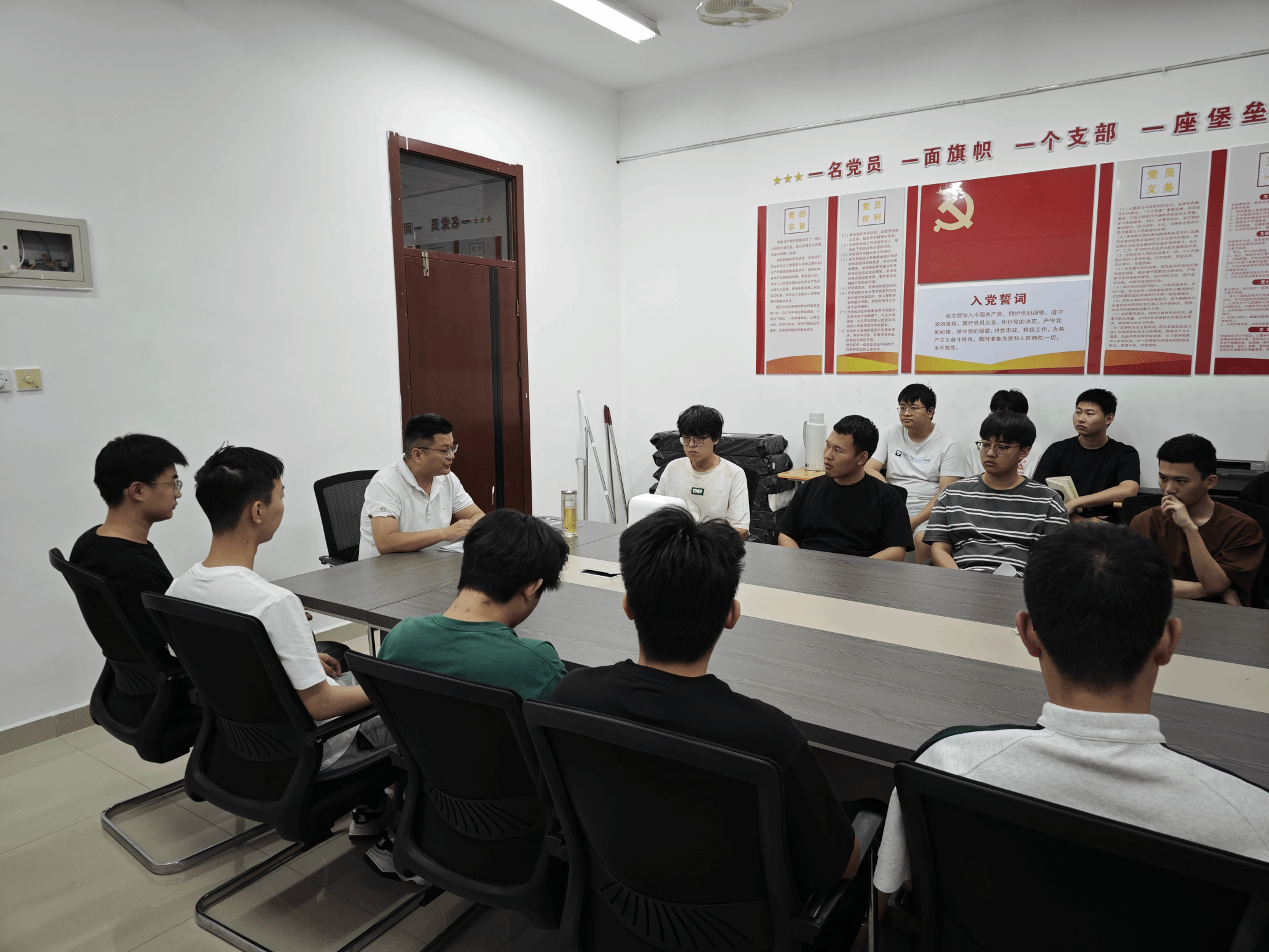 活动中,蔡国庆老师详细地了解学生近期的学习生活情况,针对学生们关于专业认知和个人发展等方面的问题提供了意见建议,并鼓励同学们在学期后半程更要保持良好的学习状态和积极的心态,为英语四六级和期末复习提前做好准备。