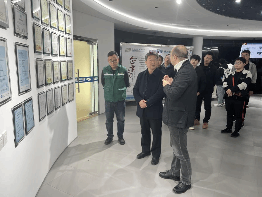 我校一行人受到了公司总经理薛琪、行政总监邓超的热情接待,在他们的陪同下参观了公司展厅,丰富多样的产品展示与企业荣誉让师生们直观感受到了新南风公司的企业文化与技术实力。紧接着,参观队伍深入工作现场与生产车间,老师同学们与企业技术人员积极交流,深入了解行业前沿技术与实际生产应用的融合。随后,校企双方展开深入座谈,葛洪伟表示,电气自动化系长期以来致力于培养具备创新精神和实践能力的应用型人才,与企业需求高度契合,希望日后双方能加强合作,共同促进毕业生高质量就业。校企双方也围绕人才培养方案、实习实训基地建设、产学研合作等多方面展开了热烈讨论。
