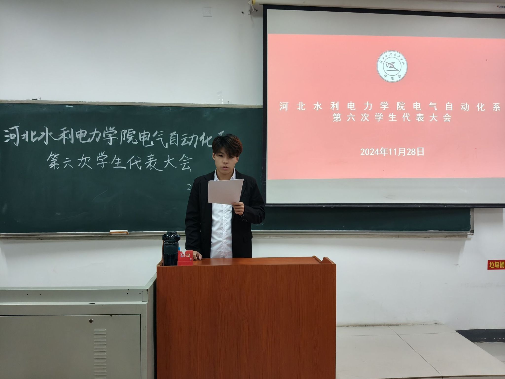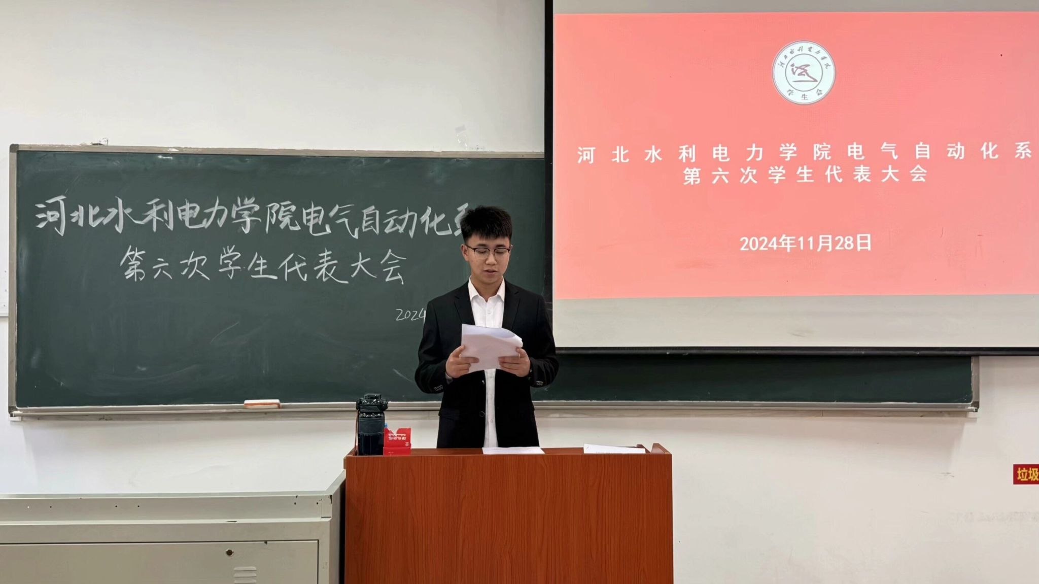 11月28日,电气自动化系第六次学生代表大会在笃行楼A106召开。电气自动化系党总支书记葛洪伟、团委书记张宁、辅导员董钊睿出席会议,全系共计40名学生代表参加会议。