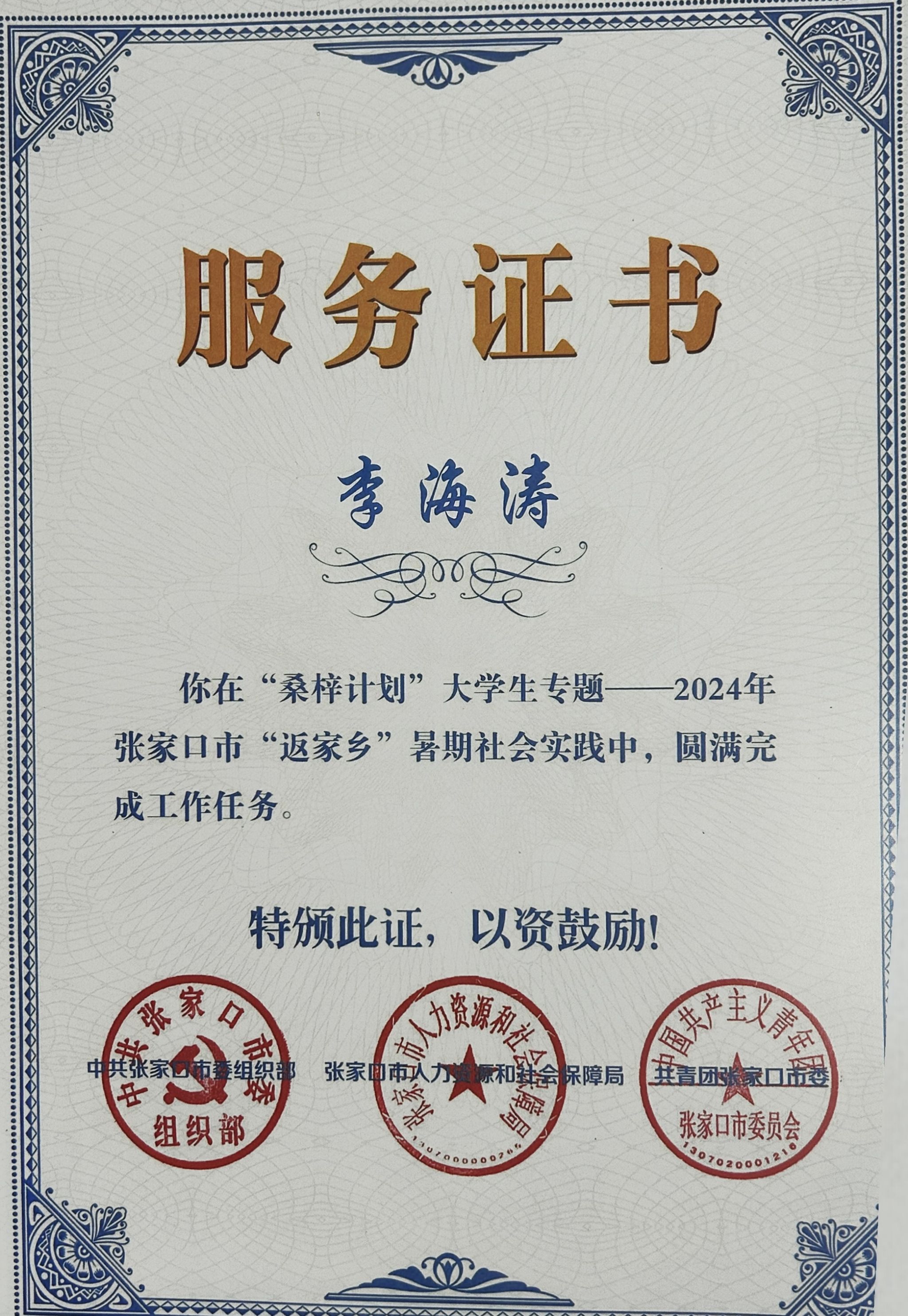 近日,社会实践工作传来喜讯,机械工程系学生李海涛在今年暑期社会实践活动中表现突出,荣获张家口涿鹿县共青团委的高度评价与表彰,被授予“优秀志愿者”荣誉称号,并收到涿鹿县共青团委的感谢信。
