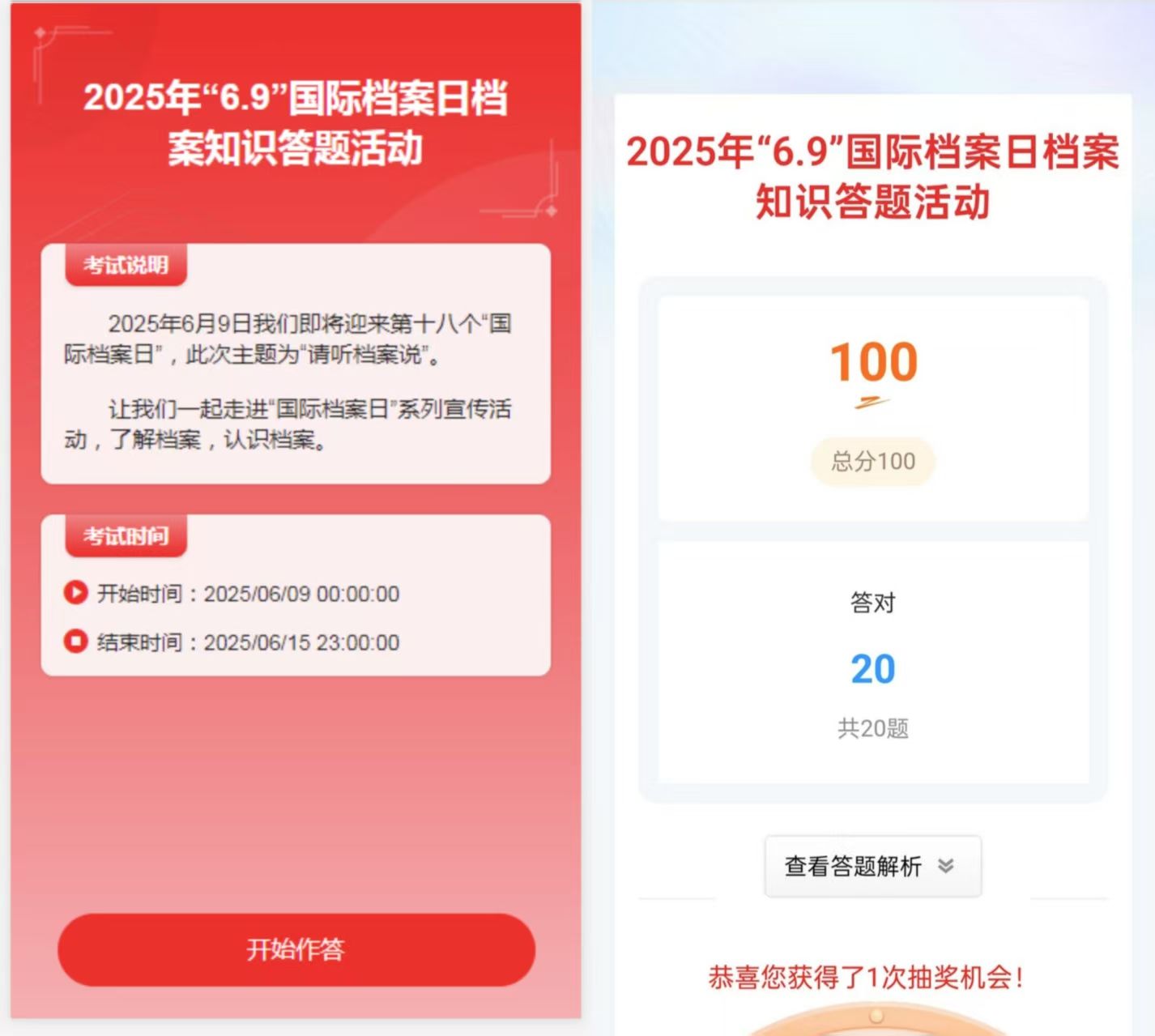 线上答题以考促学,档案知识入脑入行。6月9日至15日,我校举办档案知识线上答题活动,重点对《中华人民共和国档案法》《高等学校档案管理办法》等,以答题形式推动档案员学习专业法规,提升业务能力,助力学校档案工作规范化管理。